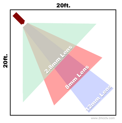 A camera’s field of view is based on the focal length of the lens, which is the distance of the lens to the imaging sensor, and the imagining sensor size. This focal length is represented in millimeters (mm). The smaller the distance, the wider the field of view. The larger the distance, the more narrow (think tunnel vision) the view. The smaller the FOV, see close up and wide. The larger the FOV, view something at a distance.